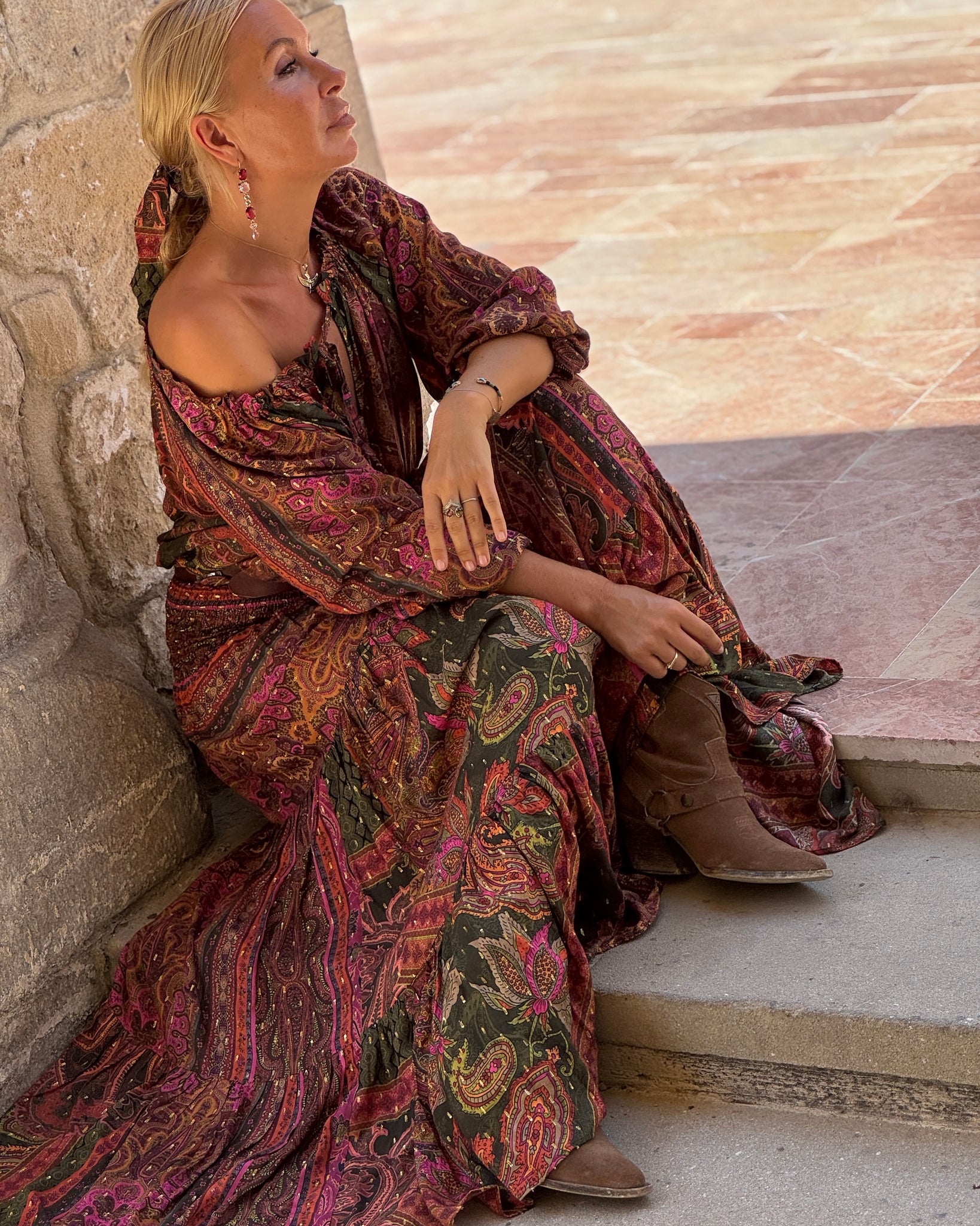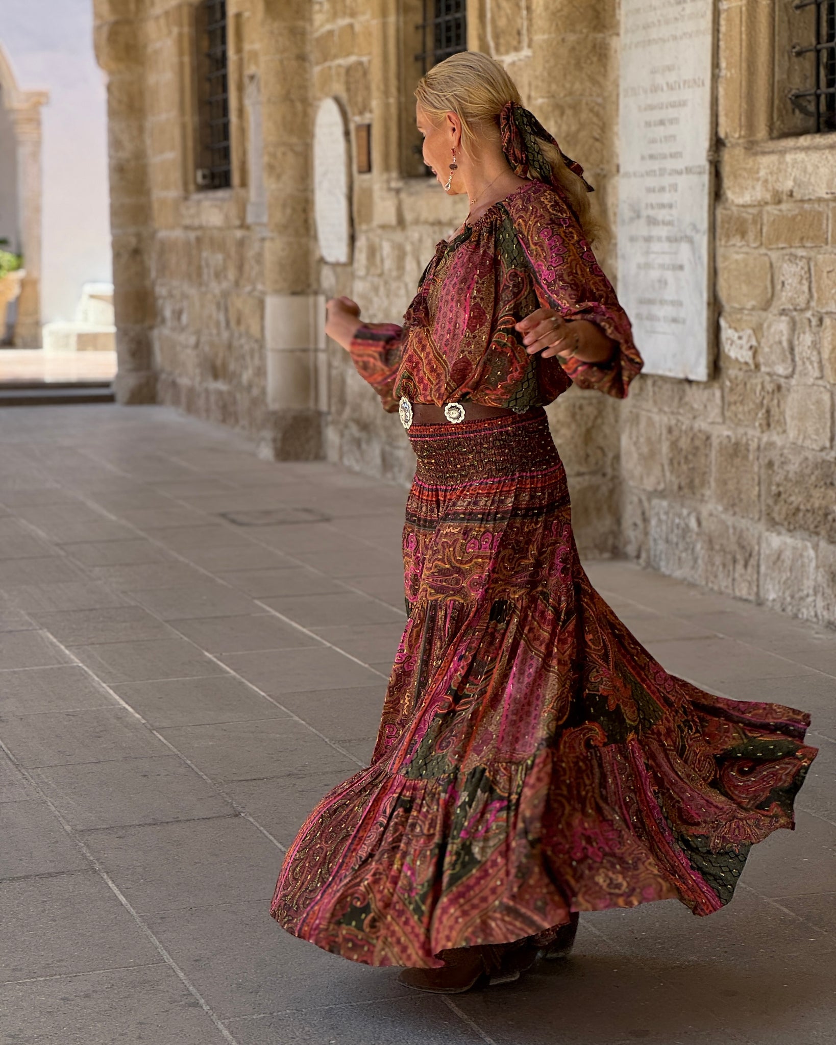 GYPSETTE MAXI SKIRT / tourmaline print+ golden thread