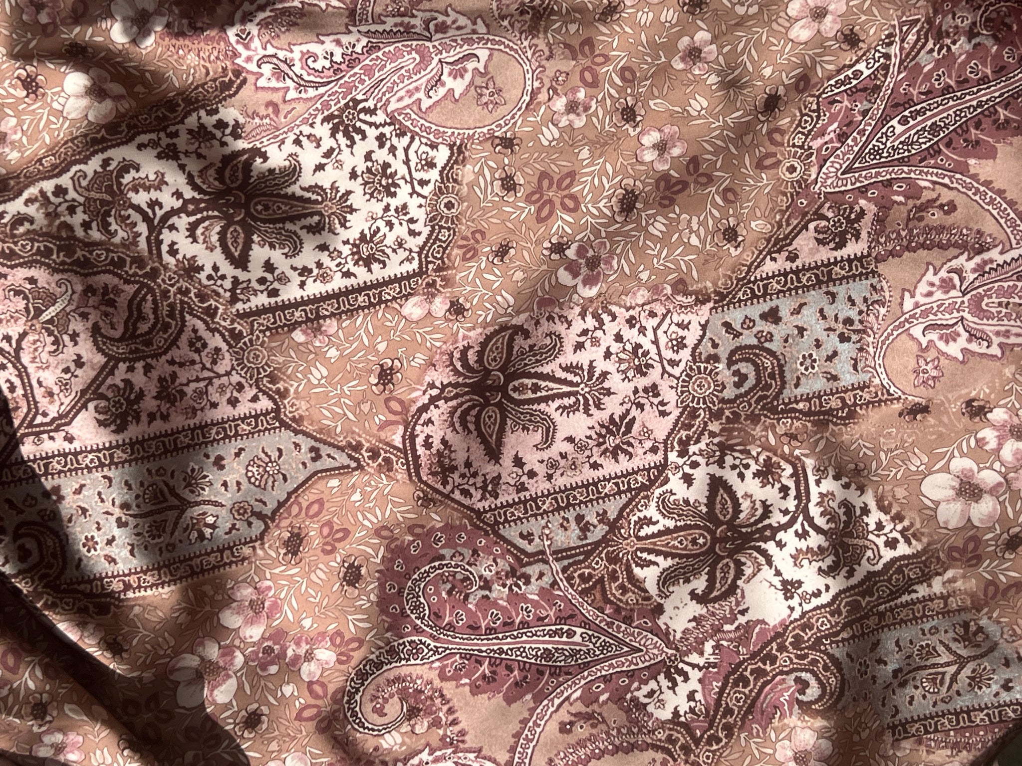 KARIATIDE MAXI DRESS/ Cafe Latte:  beige+dusty rose silk