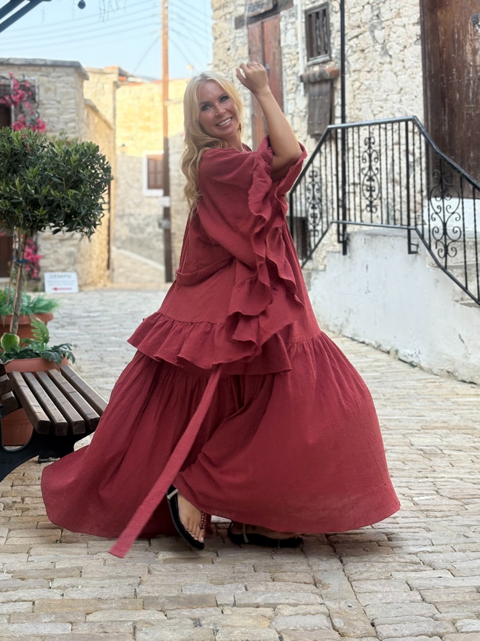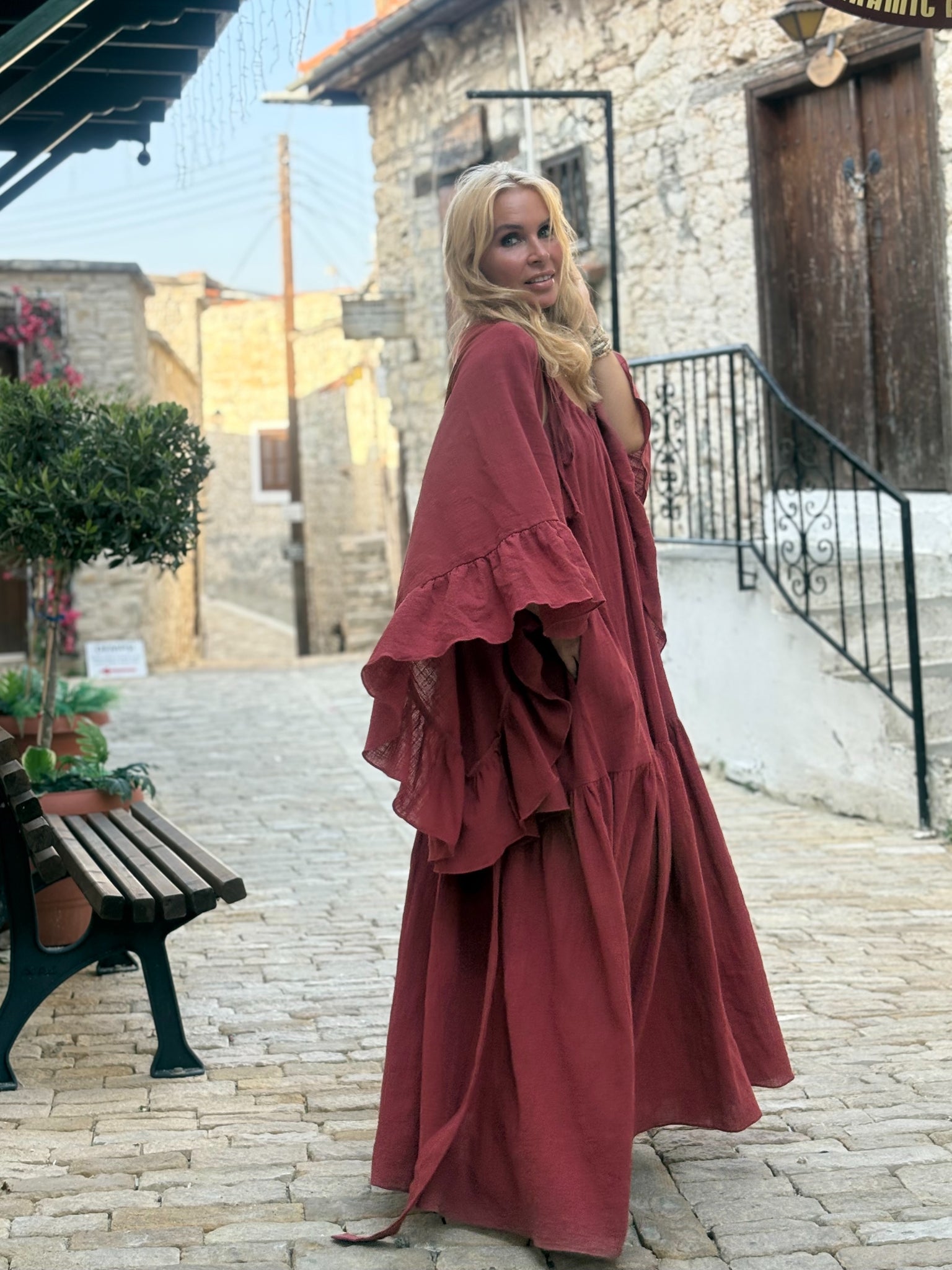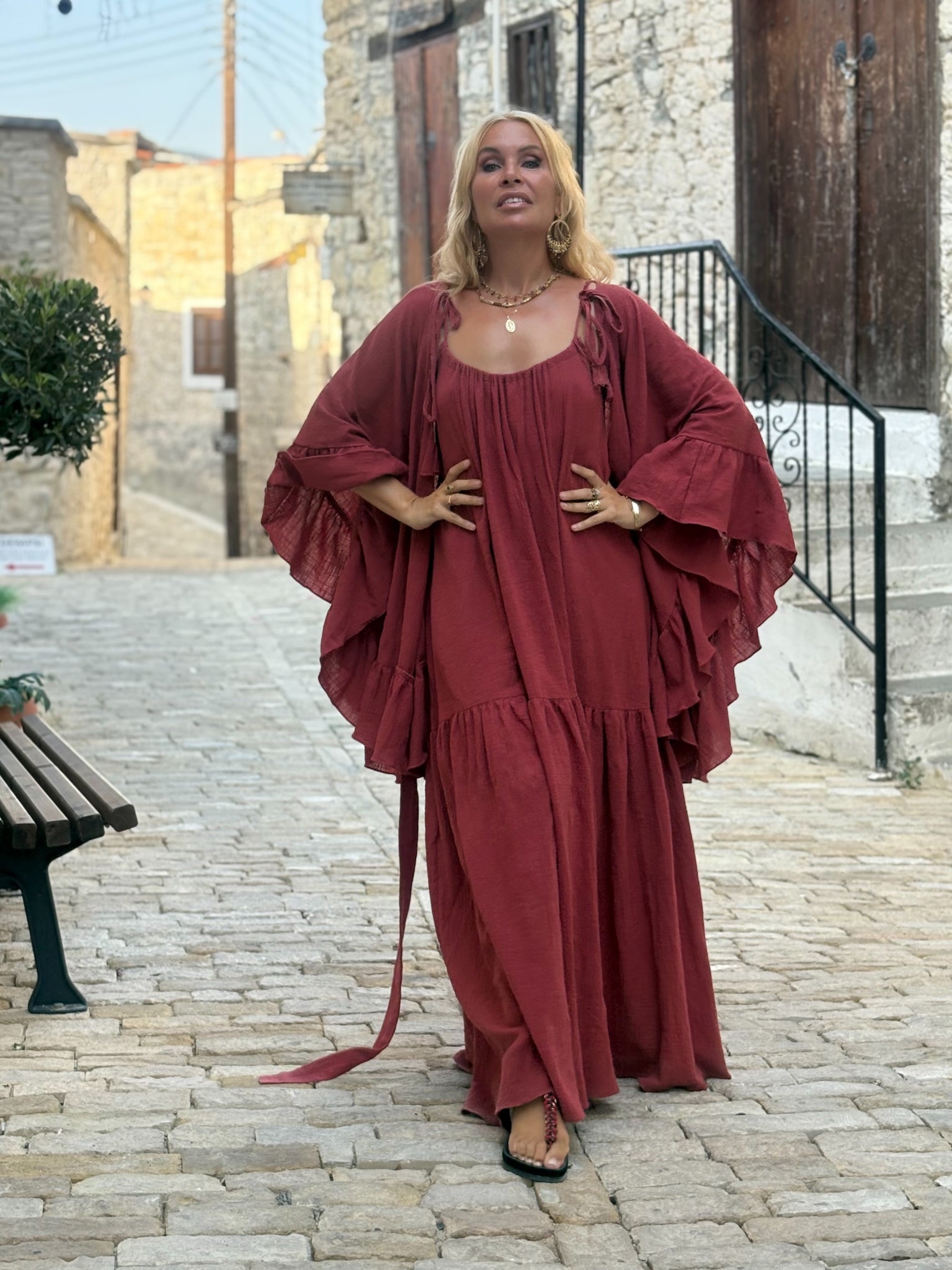 MUSE Kimono/ poncho , może być noszone na ròżne sposoby, ale zawsze gwarantuje efekt WOW:) Luźny kròj bez odciętych rękawòw nadaje efekt skrzydeł, wzmocniony przez obszycie całego brzegu mocno marszczoną, 15 centymetrową falbaną, ktòra pięknie porusza się przy każdym ruchu. Uniwersalny rozmiar, uniwersalny kròj, ozdobi każdą stylizację. Talię można podkreślić paskiem z tej samej tkaniny ( w komplecie).
